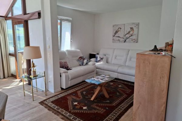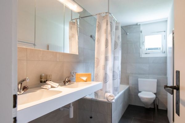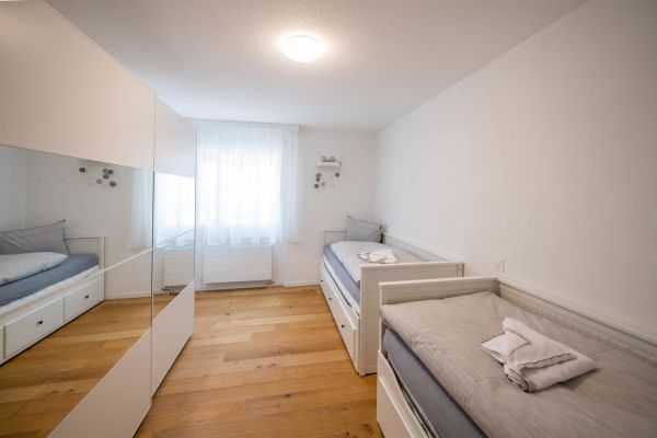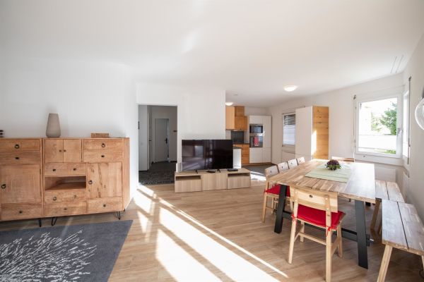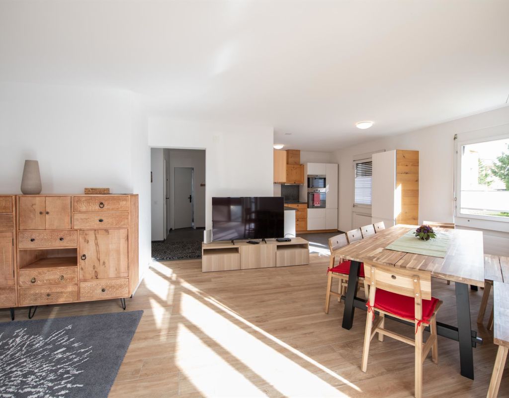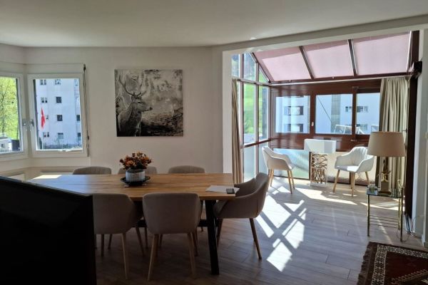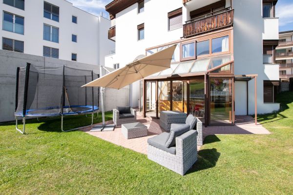 Komplett renovierte (2019), helle 5.5-Zimmer Duplex-Wohnung (ca. 120m2), mit privatem Garten zur eigenen Nutzung, im Erdgeschoss eines Mehrfamilienhauses, für bis zu 11 Personen; 1 Schlafzimmer mit 1 x Doppelbett in 2 Betten separierbar, 1 Schlafzimmer mit 2 x Einzelbetten, in je ein Doppelbett ausziehbar, 1 Schlafzimmer mit 3-er Kajütenbett; Wohn-Esszimmer mit Schrankbett (Doppelbett); Flachbild-Kabel-TV, WiFi; Sofaecke mit 2 Sofas; Dusche/WC, Badewanne/WC; Wohn-Esszimmer steht ein langer Tisch mit 6 Stühlen, zweiter grosser Tisch mit weiteren 6 Stühlen im Wintergarten; vollausgestattete Küche mit einem Geschirrspüler, Kühlschrank, Backofen, Mikrowelle, Kochfeld; Babybett (Reise-Babybett) ist gegen pauschalen Aufpreis vorhanden; im unteren Teil der Wohnung ist der Ausgang zum Garten via grossen Wintergarten; Gartenmöbel und grosser Sonnenschirm auf dem Gartensitzplatz vorhanden; für Grillplausch und gemeinsames Verbringen eine sehr gemütliche Lounge; Trampolin für Kinder steht im Garten; das Haus Agrimonia steht an einer tollen Lage; in nur 4 Minuten zu Fuss erreichen Sie das Bolgen Jakobshorn Skigebiet; für Wanderer ist man in 2-3 Minuten zu Fuss am Landwasser Fluss auf dem Spazierweg; Bahnhof und Einkaufmöglichkeiten sind 5-6 Minuten entfernt; Haustiere auf Anfrage; Nicht-Raucher Wohnung.