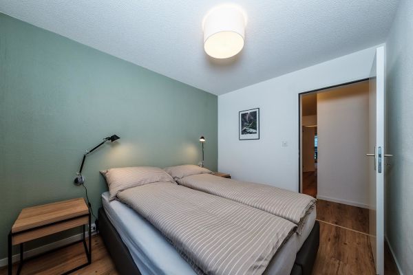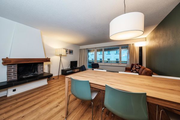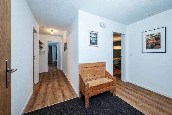 4½-Zimmerwohnung Nr. 402, Etage 3, für 6 Personen (ca. 105m²); Mehrfamilienhaus mit Lift, Balkon Süd; Parkplatz Nr. 14 (Whg 402) in Einstellhalle, weitere Parkplätze müssen dazu gemietet werden CHF 70.-- pro Woche; zur Mitbenützung: Waschküche, Skiraum, Aufzug/Lift, Sauna (nicht im Mietpreis inbegriffen), Hinter dem Haus Kinderspielplatz; Wohnraum mit Polstergruppe, Essecke, TV, Kamin, WiFi; 3 Schlafzimmer mit Doppelbett (Boxspringbett, 2 Matratzen, 80x200); offene Küche mit 4-Platten Glaskeramikherd, Backofen, Mikrowelle, Kühlschrank, Tiefgefrierer, Geschirrspüler, Kapsel-Kaffeemaschine; Bad/Dusche/WC und sep. Dusche/WC; Bettwäsche, Küchentücher, Frotteewäsche, Duvet nordisch; Nichtraucher Wohnung; Haustiere sind erlaubt! Auf Anfrage können Kinderbetten und Baby Hochstühle sowie Zewi-Decken dazu gemietet werden.