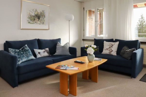 3-Zimmer-Wohnung 80 m2 im 3. Stock, Südwestlage; Garage Nr. 18; zentrale, ruhige Lage; Balkon Südlage schöne Sicht auf die Ortschaft; zur Mitbenutzung: Restaurant, Bar, Lift, Skiraum, Waschmaschine, Wäschetrockner (extra), Skischuhtrockner, Brötchenservice, Getränkeservice und Frühstück möglich, Parkplatz, Gemeinschaftsgarage max. 210cm Höhe (extra); schön und gemütlich eingerichtet: Wohn-/Esszimmer mit Digital-TV, WLAN, Ausgang zum Balkon; 1 Zimmer mit 2 Betten (90 cm), 1 Doppelzimmer; Küche mit Backofen, Geschirrspüler, 4 Glaskeramikherd Platten, Wasserkocher, elektrische Kaffeemaschine, Kapseln für die Kaffeemaschine (Nespresso) extra); Dusche/WC, sep. WC, Doppelwaschbecken; Geeignet für Familien; Bettwäsche, Frotteewäsche, Küchentücher; Haustiere nicht erlaubt; Nichtraucher-Wohnung!