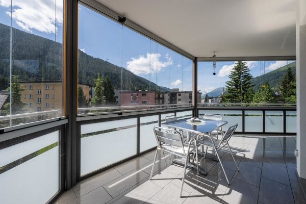 4.5-Zimmerwohnung Nr. 201, Etage 2, für 6 Personen, ca. 135 m²; überwiegend Panorama Sicht; Lift; Balkon Süd/Nord/Ost, verglast; Garage in Einstellhalle Nr. 5 ; Mitbenützung der Waschküche, Skikasten geschlossen; Wohnraum mit Polstergruppe, Essecke, TV, WLAN; 1 Schlafzimmer mit Doppelbett (1 Matratze, 160x200), Bad/Dusche/WC mit Waschmaschine, 1 Schlafzimmer mit Doppelbett (1 Matratze, 140x200), 1 Schlafzimmer mit Doppelbett (1 Matratze, 140x200); separate Küche mit Durchreiche, Fenster und Dampfabzug, mit 4-Platten Glaskeramikherd, Kühlschrank mit Tiefgefrierfach, Backofen, Geschirrspüler, Mikrowelle, Steamer, Kapsel Kaffeemaschine (Nespresso); Dusche/WC; Wohnung ohne Teppich sondern Plattenboden, Laminat; Babybett und Kinderstuhl stehen auf zur Verfügung; Bettwäsche, Küchentücher, Frotteewäsche, Duvet nordisch; Nichtraucher Wohnung; Haustiere gestattet.
