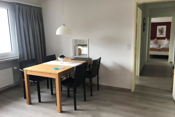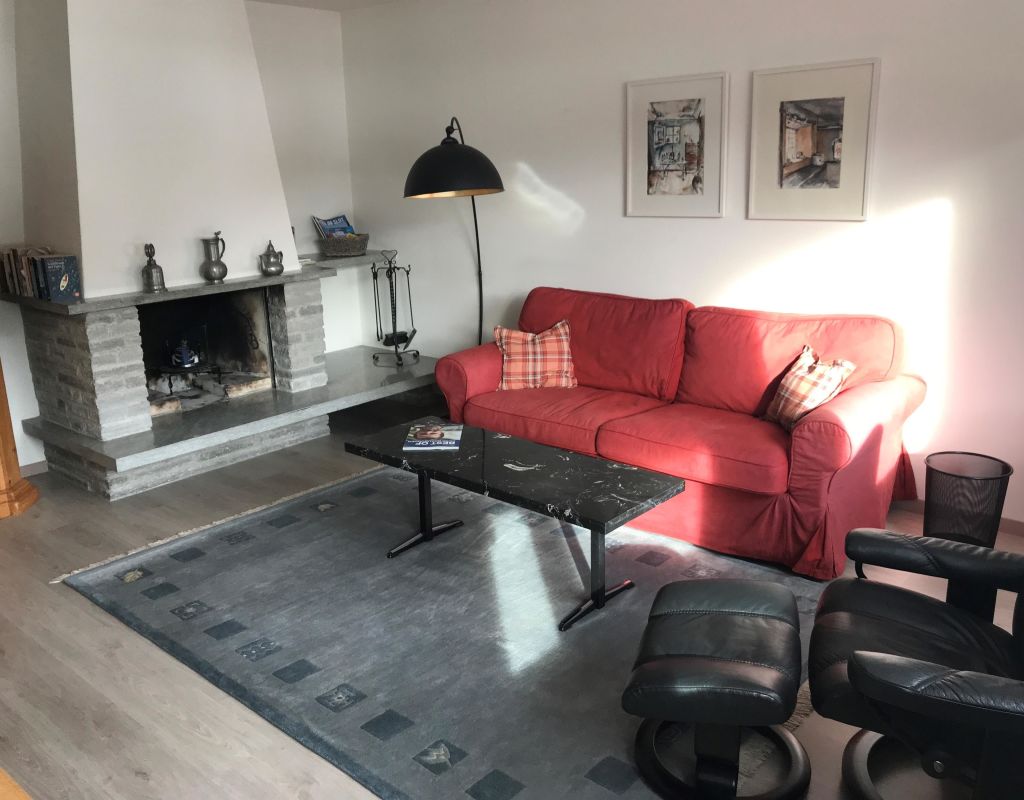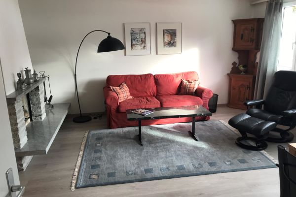 2-Zimmerwohnung im 3. Stock (ca. 60m2) in Mehrfamilienhaus mit Lift; Garage; Wohnung mit Balkon; zur Mitbenützung: Waschmaschine (nach Absprache) und Skiraum; separate Küche mit Backofen, Geschirrspühlmaschine und Kühlschrank; 1 Wohn-Schlafzimmer mit Essecke, Polstergruppe (franz. Bettsofa für 2 Personen), Cheminée; 1 Schlafzimmer mit 1 Doppelbett (2 Matratzen); 1 Bad/WC; Bettwäsche, Frottéewäsche, Küchentücher, Duvet mit Daunen, Radio, Fernseher, 1 Abfallsack (blau); Nichtraucherwohnung; Haustiere sind nicht erlaubt.