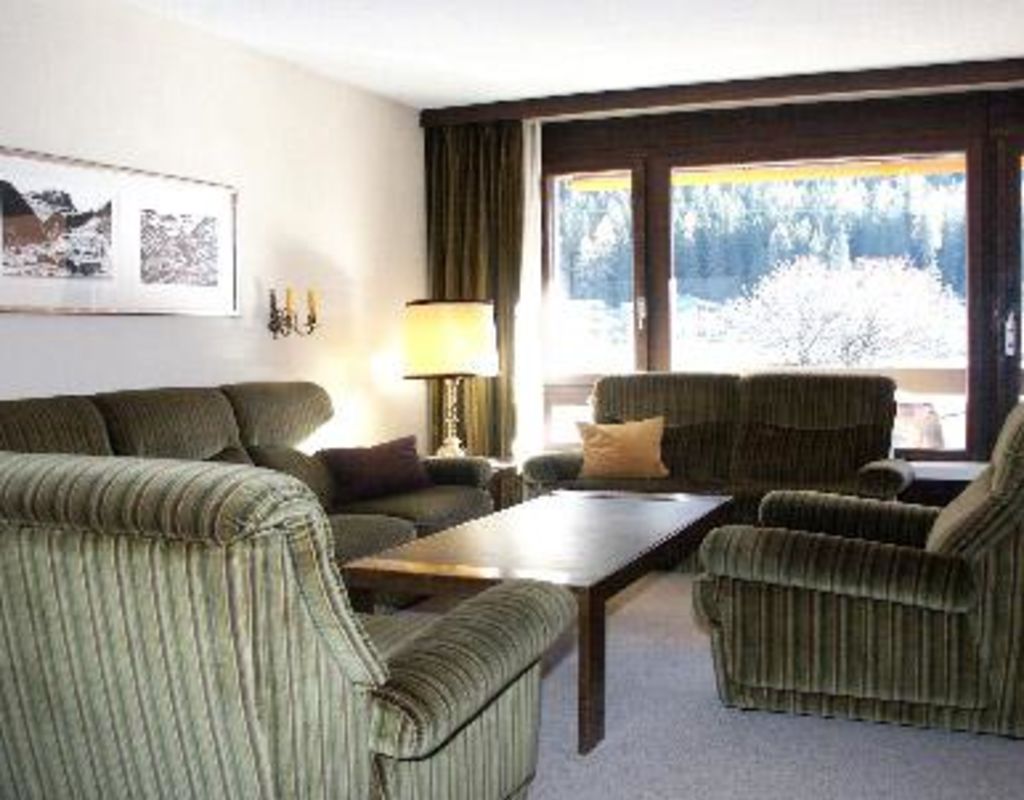 3½-Zimmerwohnung Nr. C21, Etage 2, für 6 Personen, ca. 83m²; 1 Balkon Ost, 1 Balkon Süd; 1 Parkplatz Nr. 46 in Einstellhalle, Aussenparkplatz; Mitbenützung: Skiraum, Waschmaschine (nach Absprache), Kinderspielplatz; Wohnraum mit Polstergruppe, TV, WiFi, Kamin; 1 Schlafzimmer mit Doppelbett (2 Matratzen, 90x200), 1 Schlafzimmer mit 2 Etagenbetten; separate Küche 4-Plattenherd, Kühlschrank mit Tiefgefrierfach, Backofen, Geschirrspüler, Kapsel-Kaffeemaschine, Mikrowelle; Bad/Dusche/WC, sep. WC ; Bettwäsche, Küchentücher, Frottéewäsche, Duvet Nordisch; Nichtraucher Wohnung; Haustiere sind erlaubt.