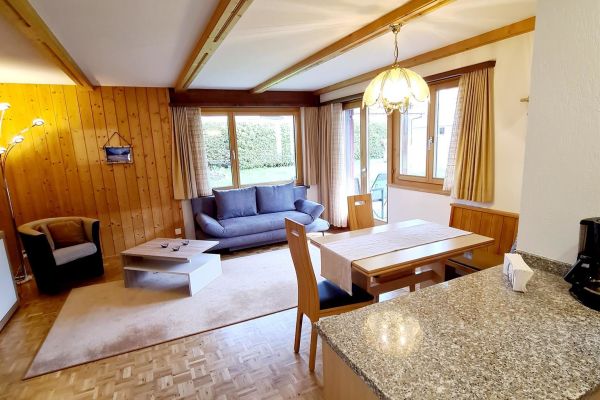 3-Zimmerwohnung mit ca. 70m2, Parterre; Parkplatz; Skiraum; Waschmaschine auf Anfrage; Garten ist zur Benützung mit Gartengrill; Wohnzimmer mit Essecke, Sofa, TV, WLAN; offene Küche mit Backofen, Geschirrspühlmaschine, Kühlschrank, Kaffeemaschine, Küchentücher; 2 Schlafzimmer mit Einzelbetten; Dusch/WC; Nichtraucherwohnung, Haustiere nicht erlaubt.
