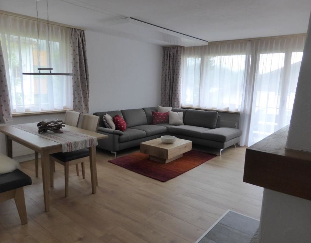 Gemütliche, sonnige 3 Zimmerwohnung (66m2) im 1. Obergeschoss eines Mehrfamilienhauses. Stilvoll eingerichtetes Wohn- und Esszimmer mit Cheminée und Zugang zum grossen Balkon mit herrlicher Bergsicht auf Gotschna und Madrisa. TV, WLAN, Radio, Safe. Grosszügige, moderne offene Küche mit Glaskeramikherd, Backofen, Mikrowelle, Geschirrspüler, Kaffeemaschine (Filter & Nespresso), Wasserkocher, Fondue- und Raclette Geschirr sowie Kühlschrank mit Tiefkühlfach und weiteren Küchenutensilien komplett ausgestattet. Die beiden Schlafzimmer verfügen über Doppelbetten. Bei Bedarf stehen ein Babybett sowie ein Kinderhochstuhl zur Verfügung. Das Badezimmer verfügt über eine Dusche, Lavabo, WC und Haartrockner. Frotteewäsche, Küchentücher und Bettwäsche (eingebettet) sind vorhanden. Bushaltestellen zu den Skigebieten in Gehdistanz. Der Garten, der Skiabstellraum und der Waschraum (Waschmaschine & Tumbler) dürfen mitbenutzt werden. Haustiere sind nicht erlaubt. Nichtraucher Wohnung.