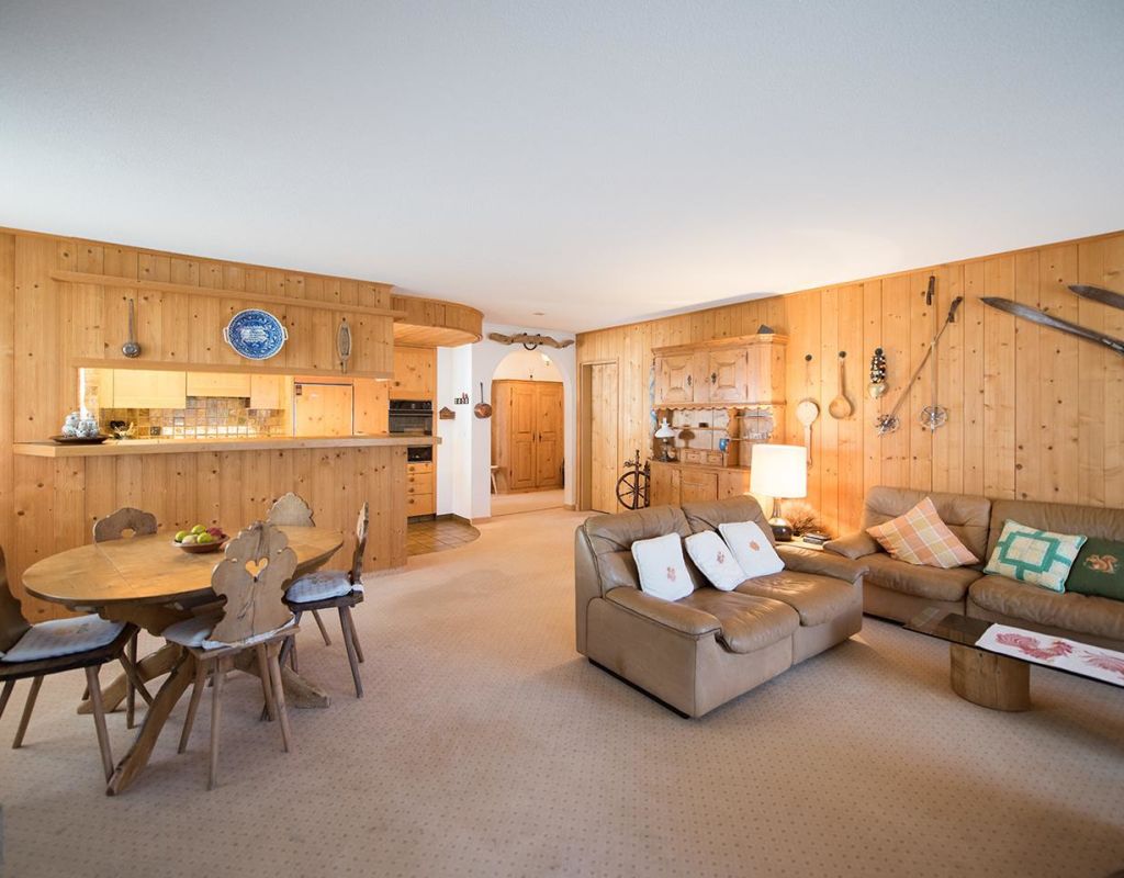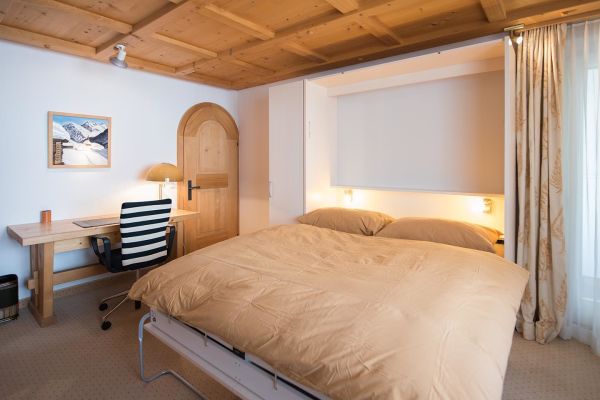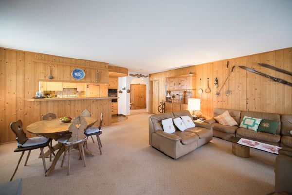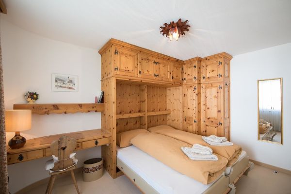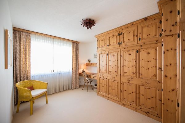 4½-Zimmerwohnung Nr. D1, Etage 3, für 6 Personen, ca. 105 m²; Balkon Süd/West; Parkplatz Nr. D1 in Einstellhalle; Mitbenützung der Waschküche, Skiraum mit Kästen, Aufzug/Lift; Wohnraum mit Polstergruppe, Essecke, TV, Wlan, Kamin; 1 Schlafzimmer mit 1 Klappbett (160 x 200) , TV, kleiner Balkon, durch dieses Zimmer muss man hindurch gehen, um die anderen Schlafzimmer zu erreichen; 1 Schlafzimmer mit 2 Betten, Bad/Dusche/WC; 1 Schlafzimmer mit 2 Klappbetten (90x 200); offene Küche mit 5-Platten Glaskeramikherd, Kühlschrank, Gefrierschrank, Backofen, Geschirrspüler, Mikrowelle, Kapsel-Kaffeemaschine (Mocca Nespresso Kapseln); sep. Dusche, Lavabo/WC; Bettwäsche, Frotteewäsche, Küchentücher, Duvet nordisch; Nichtraucher Wohnung; Haustiere nicht gestattet.