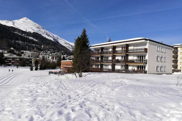 2 1/2-Zimmerwohnung im 1. Stock (58 m2), Lift, Südbalkon mit Gartenmöbeln, Garage, Skiraum. Sep. Küche (2021) mit Backofen, Kühlschrank, Kaffeemaschine, Bad/WC, Schlafzimmer mit 1 Doppelbett (2 Matratzen), 2 Schrankbetten im Wohn-Esszimmer, Bettwäsche, Frotteewäsche, Küchentücher; Esszimmer mit Eckbank, Polstergruppe, Telefon, Radio, TV, WLAN, WC-Papier, Abfallsack, KEINE Haustiere erlaubt, Nichtraucher. Das Appartementhaus "Golfpark" befindet sich zwischen Davos Platz und Dorf, unmittelbar beim Golfplatz und Langlaufzentrum, nähe Hallenbad und Kongresshaus. Die Möblierung ist nicht einheitlich aber gemütlich, sauber und intakt.
