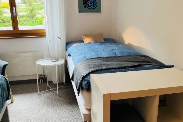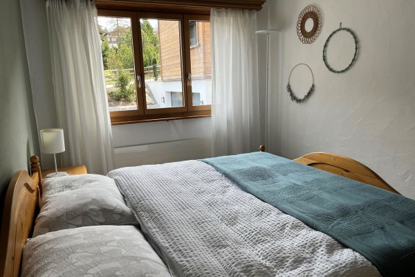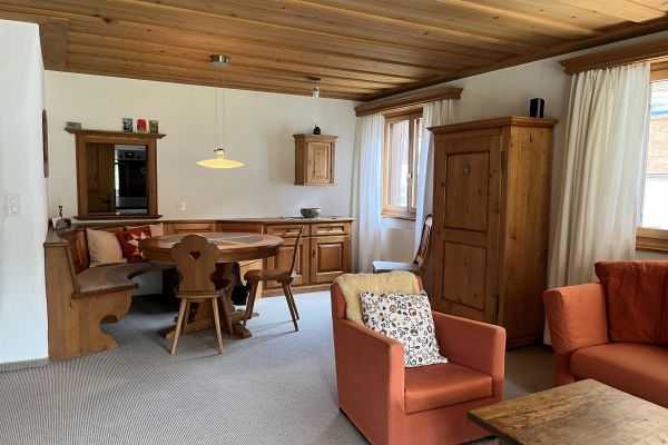 Stilvoll eingerichtete 3 1/2 Zimmerwohnung (90 m2) im 1. Stock; 1 Tiefgaragenplatz und 1 Aussenparkplatz; Mehrfamilienhaus mit Lift, Eckbalkon gegen Süden und Osten; Waschmaschine, Tumbler und Skiraum zur Mitbenützung; zwei Gehminuten von der Bushaltestelle entfernt; helles, grosszügiges Wohnzimmer (36m2), Kamin (Holz vorhanden), gemütliche Essecke, Sofa, TV, Radio, CD & DVD Player mit Surround System, gratis WLAN; Küche mit Glaskeramikherd, Backofen, Kühlschrank mit Tiefkühlfach, Geschirrspülmaschine, Nespresso- und Filterkaffeemaschine;1 Schlafzimmer mit Doppelbett und Schrank, 1 Schlafzimmer mit drei Betten und 2 Gestellen; Bad/WC mit Badewanne, Dusche/WC; Balkon mit Gartenstühlen, Tisch (draussen essen möglich); Bettwäsche, Frotteewäsche, Küchentücher; Haustiere nicht erlaubt; Nichtraucher-Wohnung!