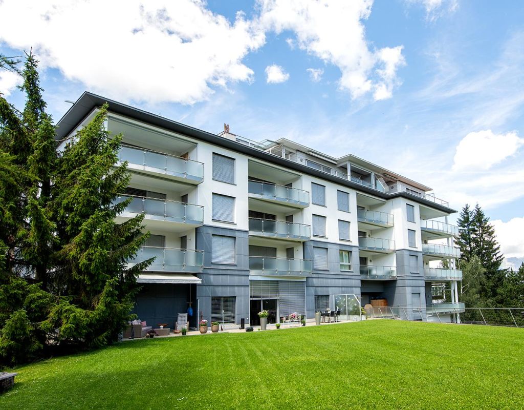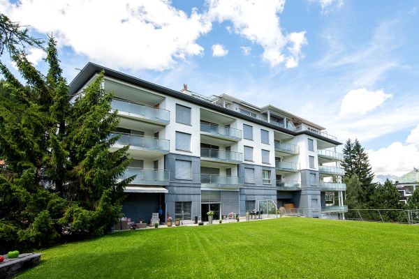 3.5-Zimmerwohnung "Cramer" / 303, Etage 1, für 5 Personen, ca. 105 m²; überwiegend Panorama Sicht; Balkon Süd; Mitbenützung der Waschküche, Skiraum, Aufzug/Lift, Veloraum, Restaurant; Garage in Einstellhalle Nr. 2 (oberste Etage), Einfahrt von Promenade nach Hotel Europe/Promenade 63;