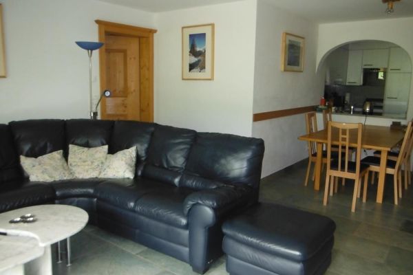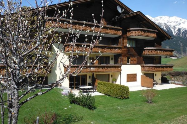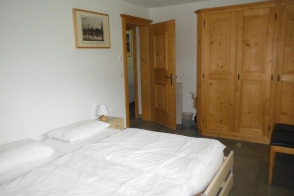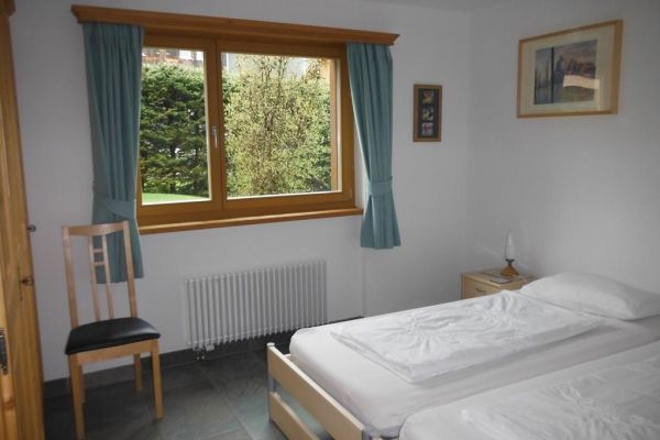 3 1/2 Ferienwohnung (85m2) im Erdgeschoss eines brandneuen, aber im traditionellen Schweizer Stil gebauten Chalet. Das Haus ist nach Süden und Westen ausgerichtet, hat Gärten auf zwei Seiten und ist ideal zum draussen Essen oder Relaxen mit toller Aussicht auf das wunderschöne Bergpanorama. Garten mit Sitzplatz, Gartenmöbel, Grill. Grosszügiges Wohnzimmer mit grosser Fensterfront und direktem Ausgang zum Sitzplatz, Boden-Heizung, TV/DVD, CD-Player/Radio, Essecke; gut ausgestattete Küche mit Einbauofen, Glaskeramikplatten, Kühlschrank, Geschirrspüler, Mikrowelle und Naturstein-Abdeckung; 2 grosse Schlafzimmer beide mit zwei Einzelbetten und 1 Unterbett; Badezimmer mit Bad/Dusche, Doppel-Lavabo und Toilette; Duschraum mit Lavabo und Toilette; Waschmaschine und Tumbler; Bettwäsche und Küchen-/Bade-Tücher sind vorhanden; Ski-& Golf-Raum mit Schliessfächern; sicherer Tiefgaragen-Platz.
