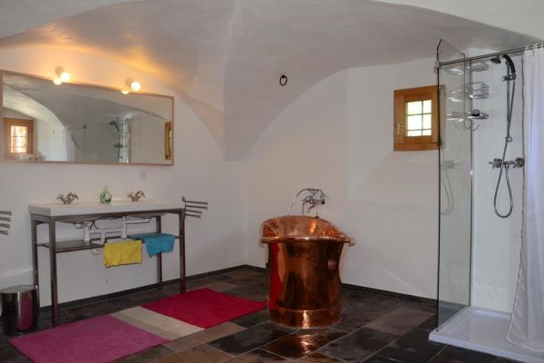 Aussergewöhnliches Ferienobjekt (250m2) in einem alten Haus; 2013 teilrenoviert; grosse Terrasse und etwas Umschwung mitten im Dorfteil Davos Wiesen; geeignet für 1 - 2 Familien; Zur Mitbenützung Waschmaschine, Trockenraum, Skiraum; Balkon und Terrasse; Parkplatz; Wohnung umfasst 8 Räume auf zwei Etagen, die Räume sind liebevoll erneuert und eingerichtet; Küche mit Elektroherd, Backofen; Kühlschrank, Gefrierfach; 4 Schlafzimmer; Bad/Dusche, total 3 Toiletten; Wohnzimmer mit TV, DVD-Player, Radio und CD, Kachelofen, Sitzecke und Sofa; Bettwäsche, Küchentücher, Decken; Haustiere sind nicht erlaubt; Nichtraucherhaus. Speziell: Geheizt wird auf jeder Etage mit einem grossen Kachelofen. Dazu gibt es in jedem Raum eine Elektroheizung.