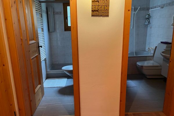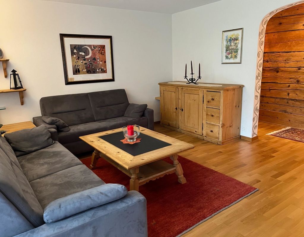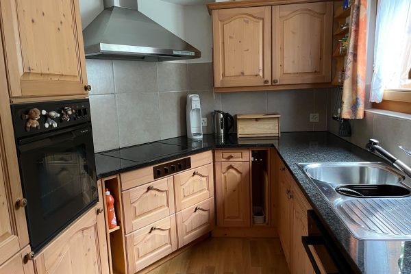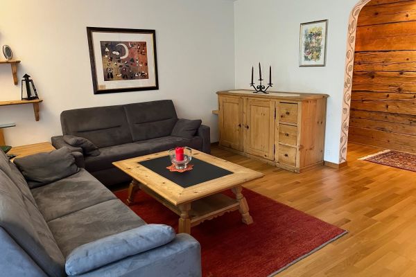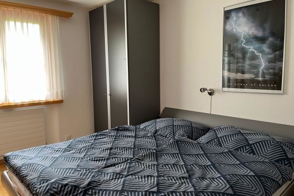 Schöne 3 1/2 Zimmerwohnung (95m2) in Mehrfamilienhaus mit Lift; gedeckter Parkplatz; ruhig Lage im EG mit Sitzplatz inkl. Balkonmöbel; Kinderfreundlich; zur Mitbenützung Waschmaschine und Tumbler; direkt bei einer Bushaltestelle; Wohnzimmer mit Sofa, TV, WLAN, Schwedenofen (nicht nutzbar!); Wohnzimmer mit Parkett; offene Küche mit Esstisch, Kühlschrank, Tiefkühlschrank, Abwaschmaschine, Glaskeramikherd, Backofen, Wasserkocher, Toaster, Fondue- und Raclette-Set, Kaffeemaschine; 1 Schlafzimmer mit Doppelbett, 1 Schlafzimmer mit 2 Einzelbetten; Badezimmer mit Badewanne/WC; Dusche/WC; Bettwäsche, Frotteewäsche, Küchentücher; Nichtraucher-Wohnung; Haustiere sind nicht erlaubt!