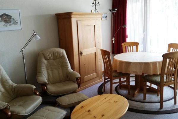 1 1/2-Zimmer-Wohnung (ca. 35m2) im 3. Stock in Mehrfamilienhaus mit Lift, Parkplatz Nr. 1, Südbalkon, Mitbenützung des Skiraum; separate Küche mit Esstisch, Backofen, Kühlschrank mit Tiefgefrierfach, Kaffeemaschine; Bad/WC; Wohn-Schlafzimmer mit Polstergruppe und Essecke, 2 Einzelbetten und 1 Klappbett; Bettwäsche, Küchentücher, Frottéewäsche, Duvet Nordisch; Telefon, Radio, CD, Fernseher, DVD, 1 Abfallsack (blau), WC-Papier. Haustiere nicht erlaubt. Nichtraucherwohnung.