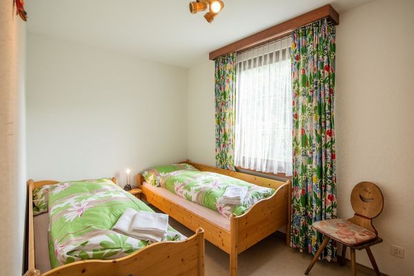 3½-Zimmerwohnung Nr. 10, Etage 4, für 5 Personen (ca. 100m²), Dachterrasse Ost/Süd/West; Parkplatz Nr. 05 in Einstellhalle; zur Mitbenützung: Skiraum im Erdgeschoss und Waschmaschine im Erdgeschoss (Münzwaschmaschine, Wäschetrockner und Wäscheständer); Wohnraum mit Polstergruppe, Essecke, TV, WLAN, Plattenboden; 1 Schlafzimmer mit Doppelbett (2 Matratzen) und 1 Sofabett, Teppichboden, 1 Schlafzimmer mit 2 Betten, Teppichboden; separate Küche mit 4-Plattenherd, Kühlschrank mit Tiefgefrierfach, Backofen, Geschirrspüler, Kapsel-Kaffeemaschine (Delizio); Bad/Dusche/WC, sep. WC; Schlafzimmer mit Teppichboden - Wohnzimmer mit Plattenboden; alle Böden beheizt; Bettwäsche, Küchentücher, Frottéewäsche, Duvet Nordisch; Nichtraucher Wohnung; Haustiere erlaubt.