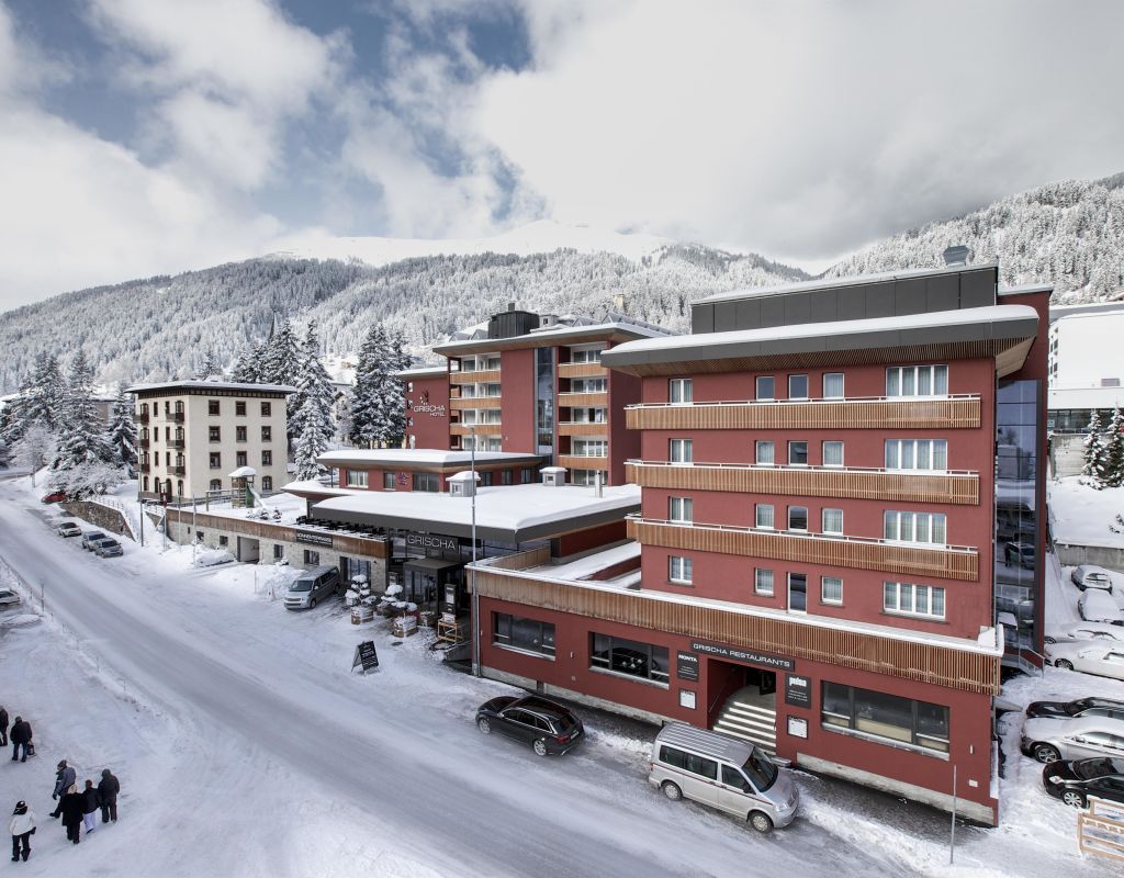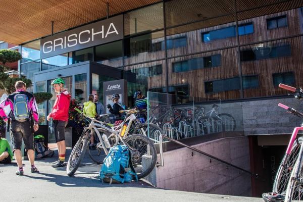 Grischa - DAS Hotel in Davos liegt direkt gegenüber der Jakobshornbahn (neu mit direkter Unterführung) und dem Bahnhof in Davos Platz und wird den Anforderungen an ein 4 Sterne-Superior Hotel mehr als gerecht. Bereits beim Betreten der Lobby spüren Sie die besondere Atmosphäre. Nebst 93 wunderschön eingerichteten Zimmern, geniessen Sie kulinarische Vielfalt in 5 verschiedenen Restaurants. In den Sommermonaten sind wir das führende Mountainbike Hotel der Region. Nebst der perfekten Infrastruktur mit videoüberwachtem Bikeraum sowie Reparatur- und Waschstation, bieten wir unter anderem auch geführte Biketouren im Singletrailparadies Davos Klosters (für unsere Hotelgäste kostenlos). Im Winter verwandeln wir das Bikehotel in ein Skihotel mit den entsprechenden Leistungen. Freuen Sie sich auf ein spannendes Angebot. Weitere Informationen und Unterlagen finden Sie auf unserer Homepage: www.hotelgrischa.ch