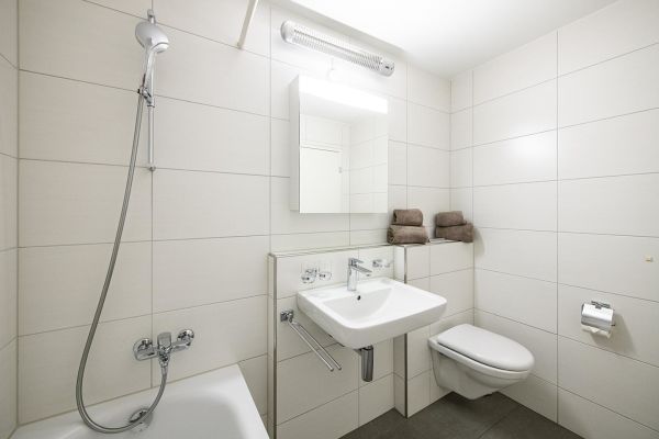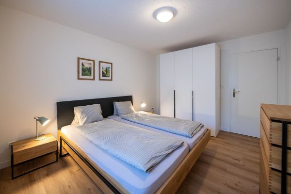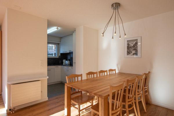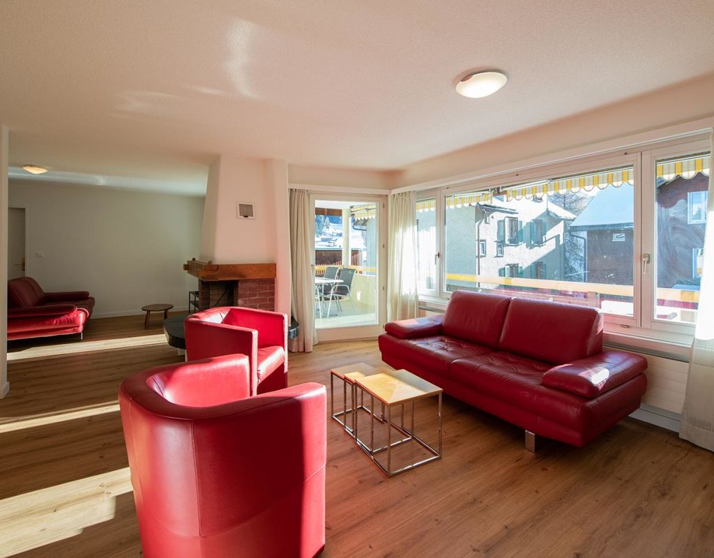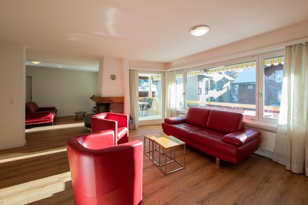 3.5 room apartment nr. 405 on floor 3, 7 persons, about 108 m²; apartment house with elevator, big balcony south/west, garage no. 18; for shared use: laundry room, ski room, lift, sauna (not included in rental price), children's playground behind the house; living room with sofas, dining corner, 2 folding beds, TV, WLAN, open fire; 1 bedroom with double bed (2 mattresses, 90x200cm), 1 bedroom with double bed (2 mattresses, 90x200cm). + 1 bed; open kitchen with window and with ventilation, 4 plate stove glass ceramic field, oven with microwaves, fridge with freezer part, dishwasher, coffee machine with capsule; bath/shower/toilet, separate shower/toilet; bed linen, kitchen towels, bath linen, nordic cover; pets are allowed, non smoking only! Cribs, baby chairs, and Zewi-blankets can be rented on request.
