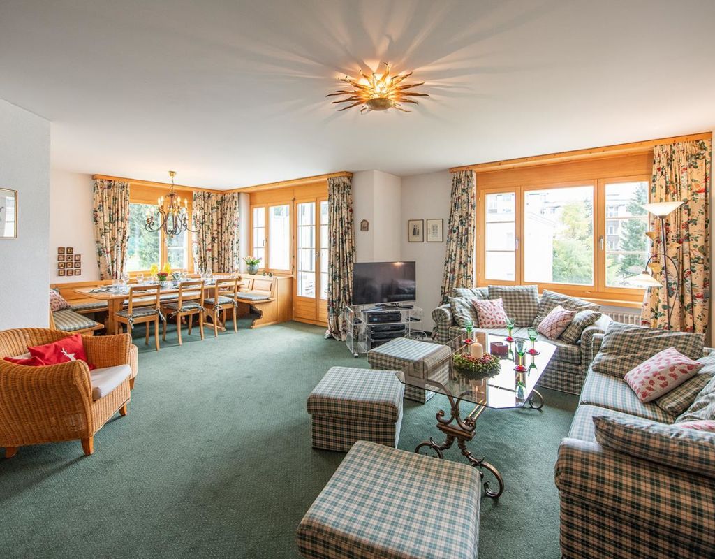 4.5 room apartment nr. C21 on floor 2, 6 persons, about 125m²; balcony south/west; garage nr. 46/47, outside parking "Tandler"; for communal use washing room, ski room, elevator, childrens play garden; living room with sofas, dining corner, WiFi, TV; 1 bedroom with 2 beds, 1 bedroom with 2 beds, 1 bedroom with double bed (2 mattresses); bath/toilet, sink; open kitchen with ventilation, 4 plate stove glass ceramic field, oven, fridge with freezer part, dishwasher, coffee machine with capsule; separate shower/toilet; kitchen towels, bed linen, bath towels, nordic cover; pets are allowed; non-smoker apartment.