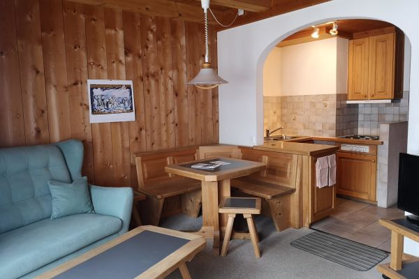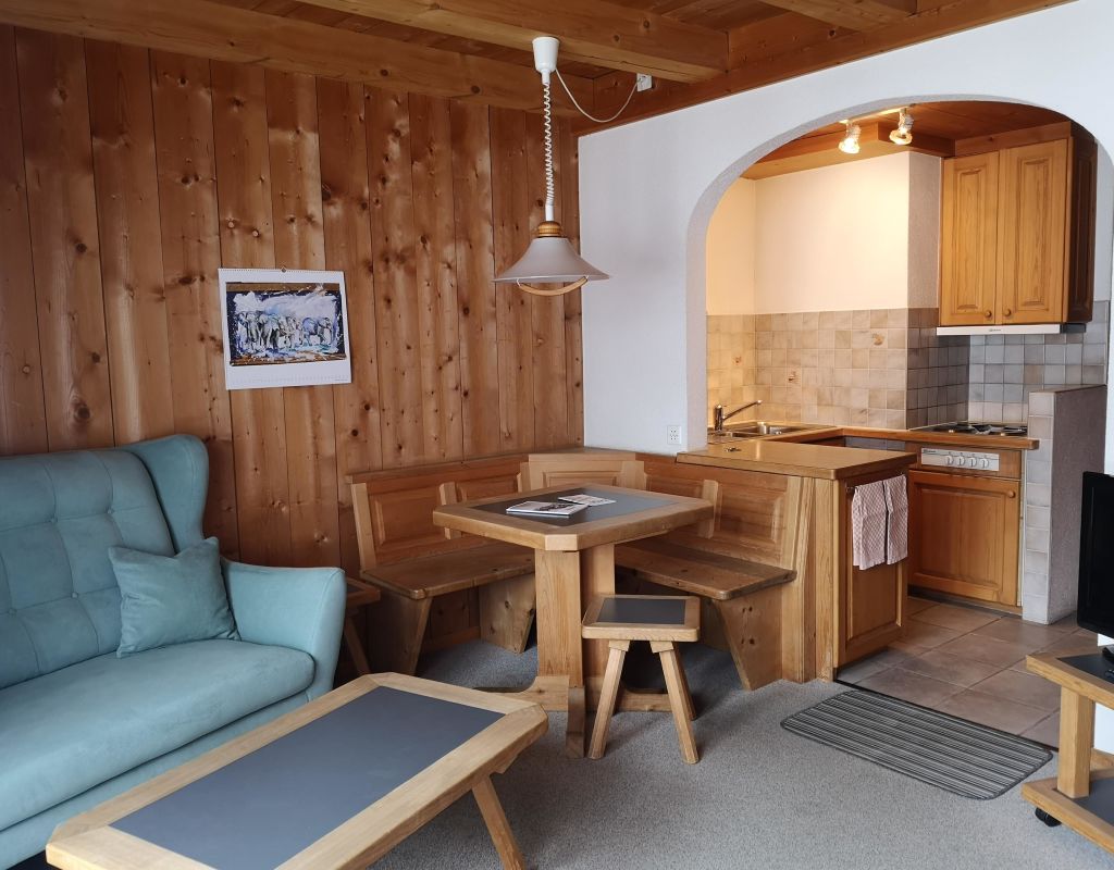 1 room-apartment on the first floor (30m2), quiet location, one familyhouse with a skiroom, garden, washing-machine on request, balcony with a table and 2 chairs. Separate kitchen with fridge, bathroom with shower, living-room with 2 double beds and one couchbed, little table, wardrobe, bed linen, kitchen towels, bath linen, continental quilt, telephone, radio, TV, rubbish bags (1 piece), toilet paper (1 role). No pets allowed!