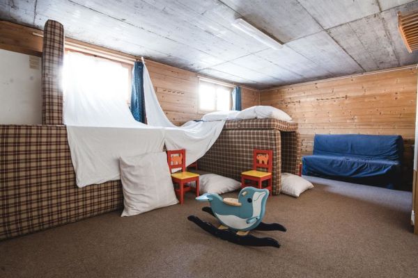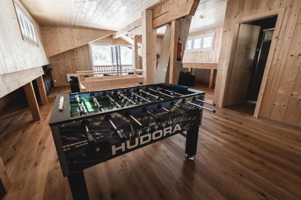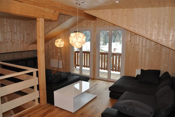 Large 12 room house with 270m2 for 14 people; ideal for 2 families with children. The object is unique; 7 x 2-bedrooms (4 single beds & 5 bunk-beds); large living room with fully equipped kitchen (dishwasher, coffee maker); free-standing fireplace; 2 additional smaller rooms each with sofa and table; a heated children's play room; 25m2 terrace and 800m2 garden in a quiet south facing; overlooking village and the ski area; bath, shower, 3 WC; bed linen, bath linen, kitchen towels; telephone, large TV, DVD, wireless, radio / CD. Brand new can optionally (surcharge) a 45m2 loft with additional bathroom and balcony in a converted attic floor to be rented.