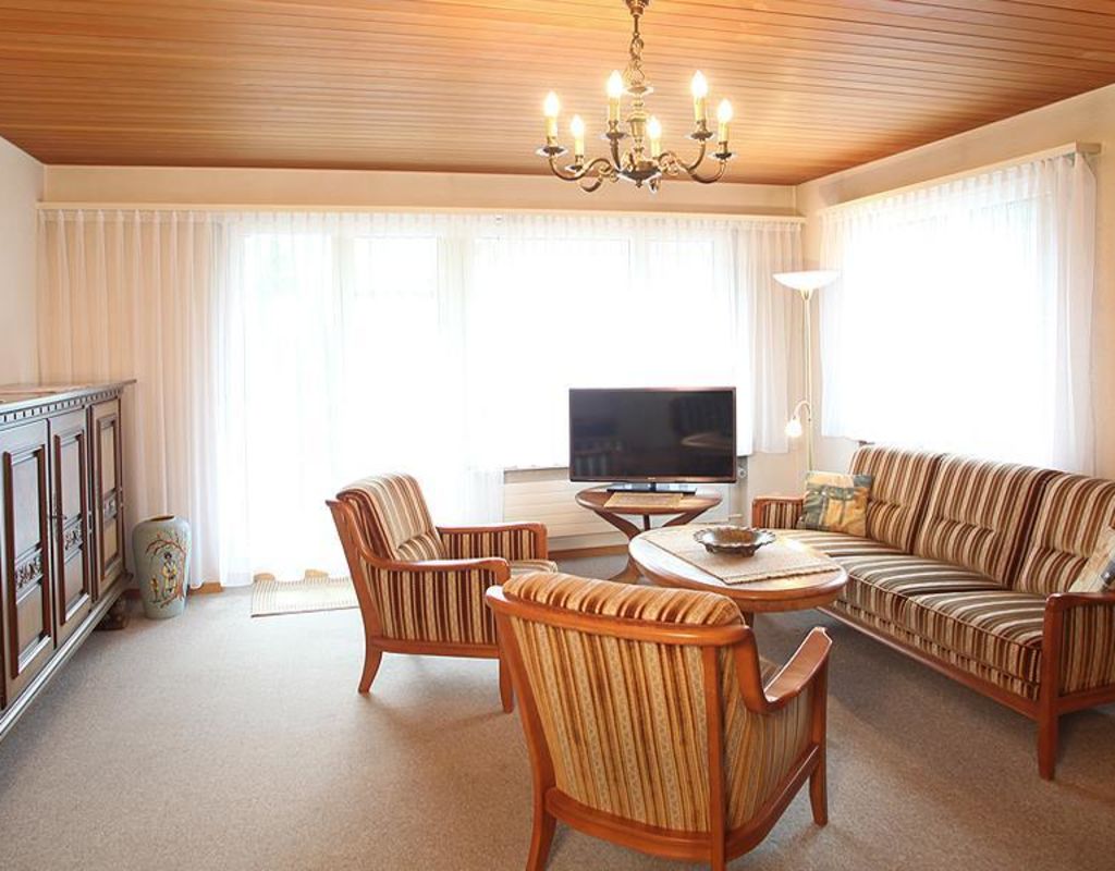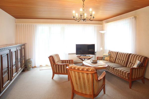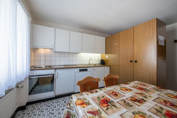 3.5 room apartment nr 3 "Kaltbrunner-Fleury" on floor 2, 5 persons, about 73 m²; balcony south/west, outside parking - parking card is in the apartment, please put it in the car; shared use of ski room, ½ floor higher elevator; living room with sofas, 1 folding bed, TV, WiFi; 1 bedroom with double bed (2 mattresses), 1 bedroom with 2 beds; open kitchen with window, 3 plate stove, oven, fridge with freezer part, dishwasher, coffee machine with capsule; bath/shower, separate toilet; apartment with carpet and laminate; appartement avec tapis et laminat; bed linen, bath linen, kitchen towels, continental quilt; non smooking aparment; pets are allowed