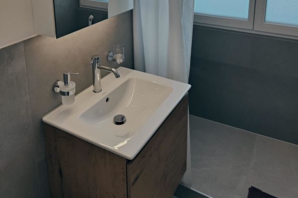 1 bedroom with double bed (mattresses 2*90*200), 1 bedroom with bunk bed (2*90*200) and two stackable single beds (2*90*200); WLAN, TV; bathroom with rain shower; stylish living/dining area with fully equipped kitchen with dishwasher, 4-burner ceramic glass stove, oven, fridge with freezer compartment, kettle, toaster, coffee maker, fondue set, raclette set; terrace with gas grill; quiet, cozy; bed linen, kitchen towels, bath linen; pets not allowed; non-smoking apartment; parking available.