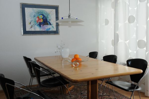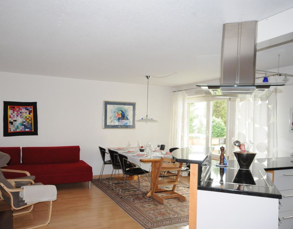 3 1/ 2 room apartment (98m2) ground floor (with elevator) of an apartment building, very quiet; has an open top living-dining-kitchen very well equipped with dishwasher, glass ceramic, oven, Nespresso coffee machine, refrigerator, toaster, mixer, etc.; 1 bedroom with a king size bed 180/200, 1 kids bedroom with 1 double bed and (1 single bed 2 mattresses); furnished balconies with view to Parsenn; bath/toilet (new) and separate toilet; TV, DVD and radio DAB, WiFi; garage included in the rental price; ski cupboard; for sharing: washing machine / dryer ( charge and by arrangement); ski room and children's playground; bed linen, bath linen, kitchen towels, continental quilt, toilet paper and 1 rubbush bag/blue; pets are not allowed; non smoking, allergy-dwelling; on request: cot, 2 high chair and changing mat; Bünda, sunny, peaceful location just a few minutes to the ski lift Bünda, cross country and close to the Davos lake; apartment renovated 2019.