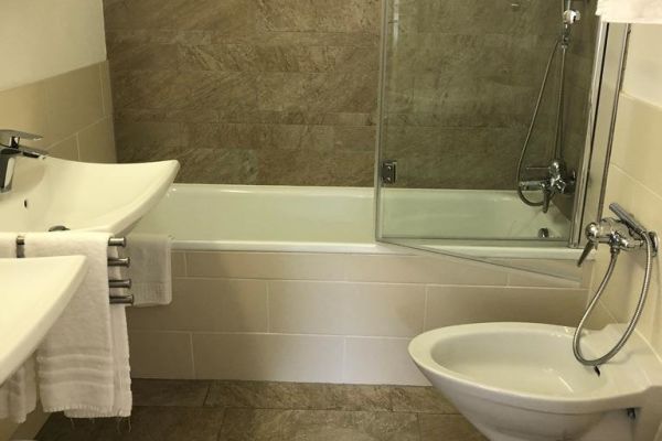 2 room apartment (50m2) integrated in the hotel Europe, central location, hotel complex with elevator, car parking, ski room; Shared use of washing machine, tumbler, indoor swimming pool and garden with playground; apartment with balcony (east); separate kitchen with oven, refrigerator, dishwasher, tchibo coffee machine; bath/WC and separate toilet; 1 bedroom with 1 double bed; 1 living-room with 1 wardrobe;1 child's bed up to 3 years old on request; parquet flooring; bed linen, kitchen towels, terrycloth towels, duvet with down nordic; telephone, radio, TV, free WiFi; pets not allowed; non-smoking apartment
