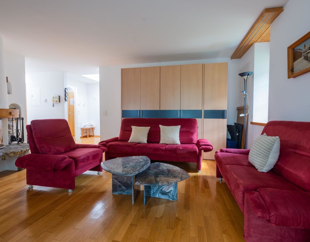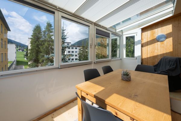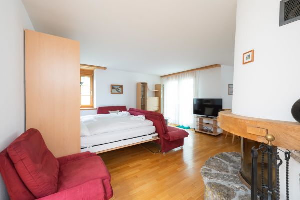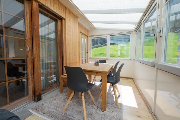 3 ½ room apartments (approx. 106m 2) on the 3rd floor, no lift; the apartment is located directly at the edge of the slope, you can ski/snowboard directly to the apartment from the ski area; multi-family house; winter garden and southwest balcony; garage for 1 car plus space for 1 car in front of the garage; shared use of the ski room, washing machine with dryer (combination unit); suitable for home office with standing desk; kitchen equipped with oven, ceramic glass hob, refrigerator with freezer compartment, dishwasher; bathroom (jacuzzi)/WC, shower/WC; 2 bedrooms with 2 double beds (2x90 cm); living room with 2 sofa beds, seating area, dining area, fireplace; bed linen, towels, kitchen towels, Nordic duvet; digital TV, internet with WLAN; blue trash bags; pets not allowed; non-smoking apartment! Ideal for families with children from 4 years old.