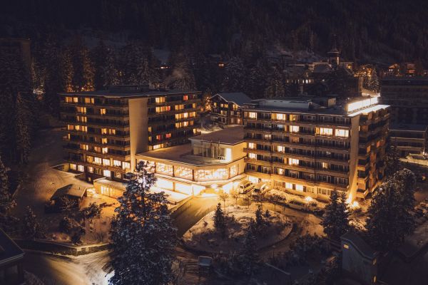 The modern 4-star hotel in the heart of Davos Platz is just a few minutes away from Jakobshorn. It offers 210 rooms and suites in five categories, including family-friendly options. Culinary delights await at the Plaza Restaurant, the Stübli with regional specialties, and the Mountain Bar with a lounge, billiards, and foosball tables. The 1,000 m² wellness area with a pool, saunas, and thermal bath invites relaxation. For sports enthusiasts, there is a new three-story fitness area with high-quality MATRIX equipment as well as a modern ski room. Various seminar rooms are available for business travelers. In summer, hotel guests benefit from various advantages of the official bike hotel, and in winter, the shuttle service to the ski areas of Jakobshorn and Parsenn, along with an in-house ski rental, completes the offerings.