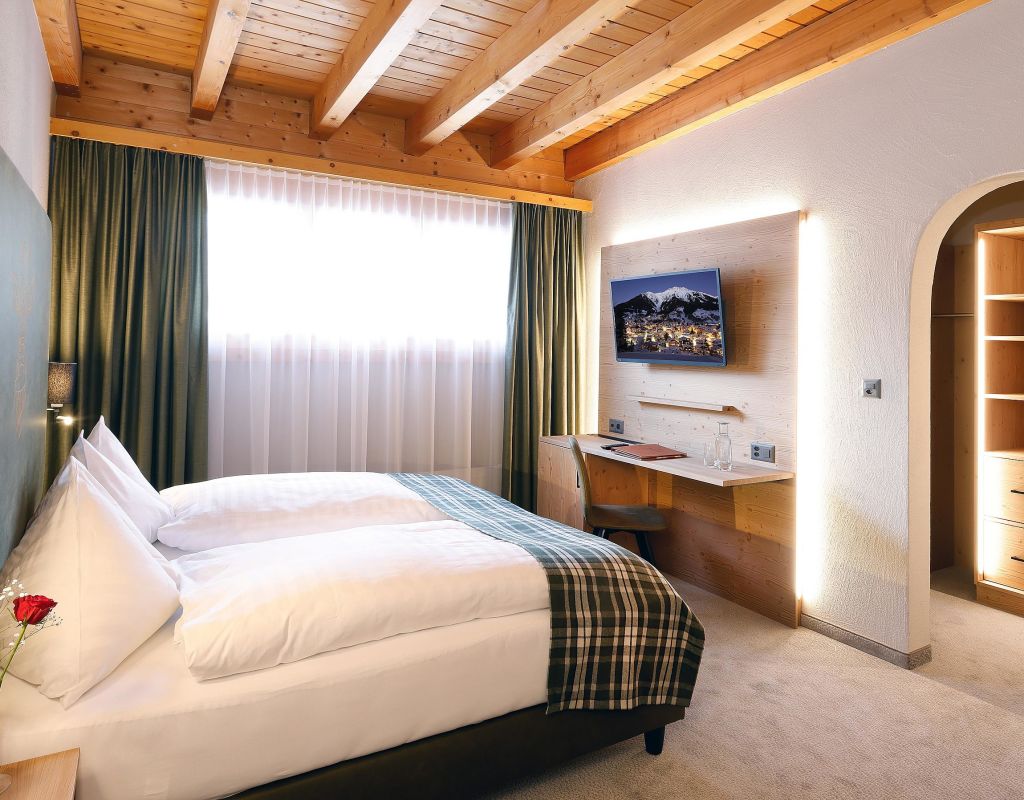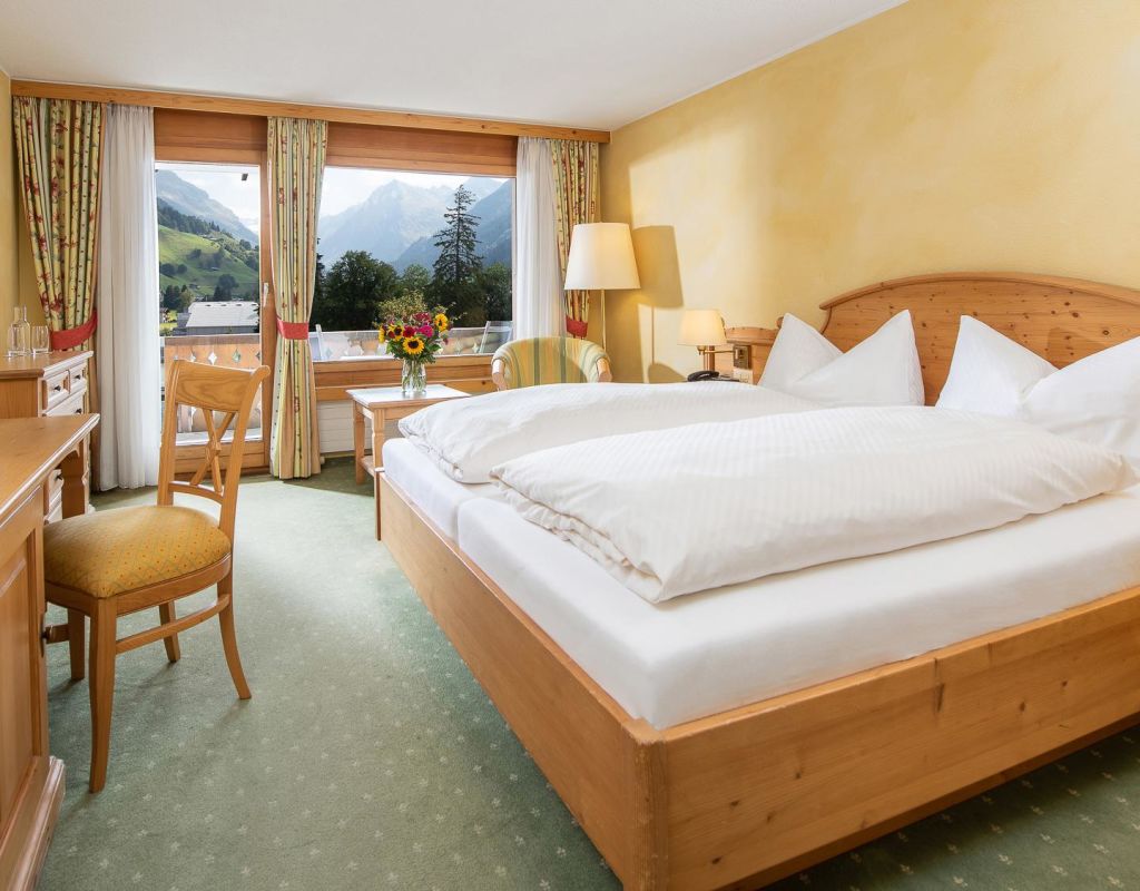 Exclusive 4-star hotel in the heart of Klosters, for all with high expectations on hotel and cuisine. Stübli, Panorama-Restaurant (Buffet), Rôtisserie & Grischalina, Piano Bar with live music in winter, Wellness, Barbor-Cosmetic-Studio, Massage and Child Care.