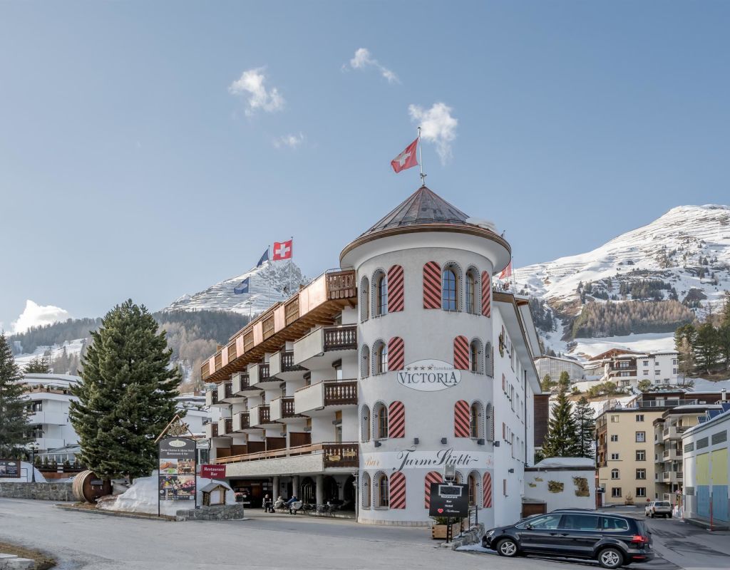 Our "Swiss Charm & Alpine " Turmhotel Victoria is the insider tip for those who want to be pampered far away from hectic and everyday stress. Your ideal hotel in Davos that exudes warmth, tradition and alpine charm. 96 fairly priced exclusively designed rooms in four categories await you. Favorably priced Comfort rooms, the noble Superior rooms, and several different and beautiful 2-room Luxury suites, mostly in Penthouse or the Tower. The spectacular Lake Davos, the world known Parsenn funicular and the Davos Dorf train station are only 200 meters away. Various shopping possibilities are nearby. The congress center and the Center of Davos are only a few minutes away. Free bus in the whole City of Davos Klosters, the bus stop is right next to the hotel.