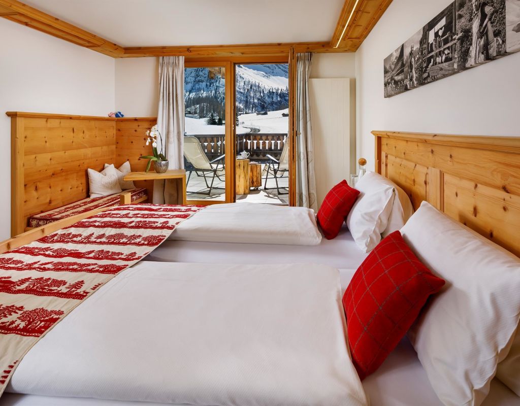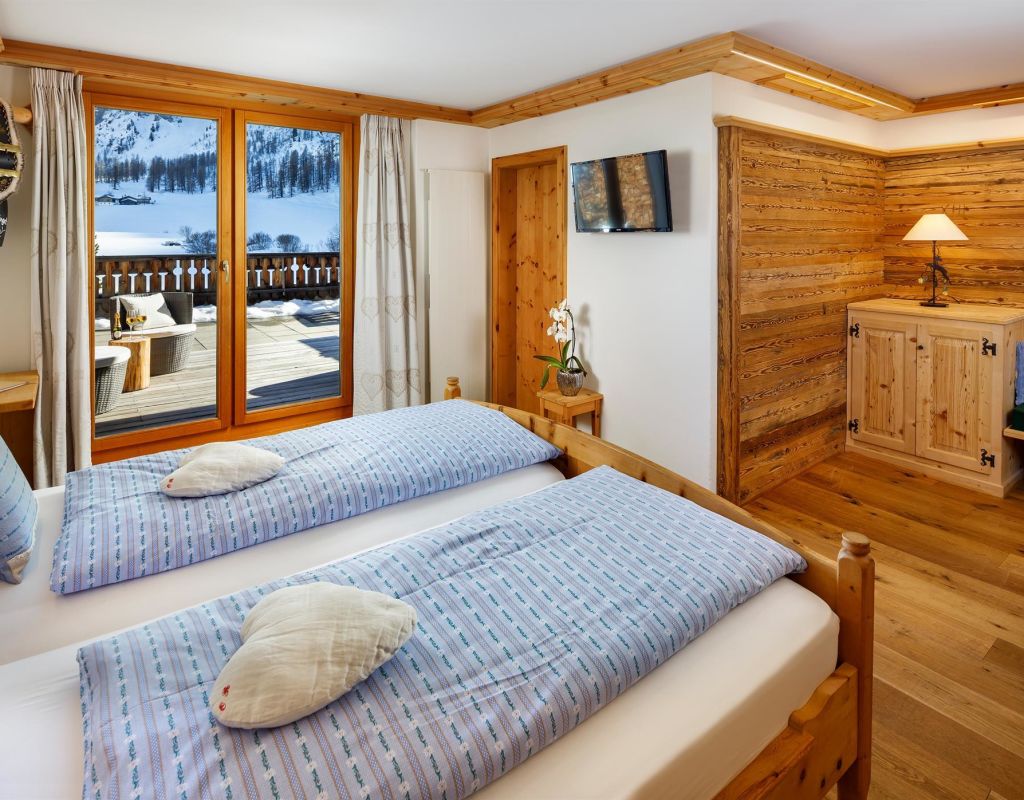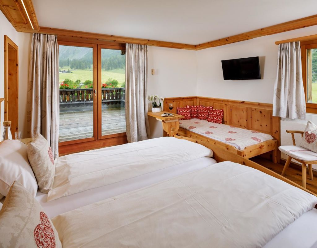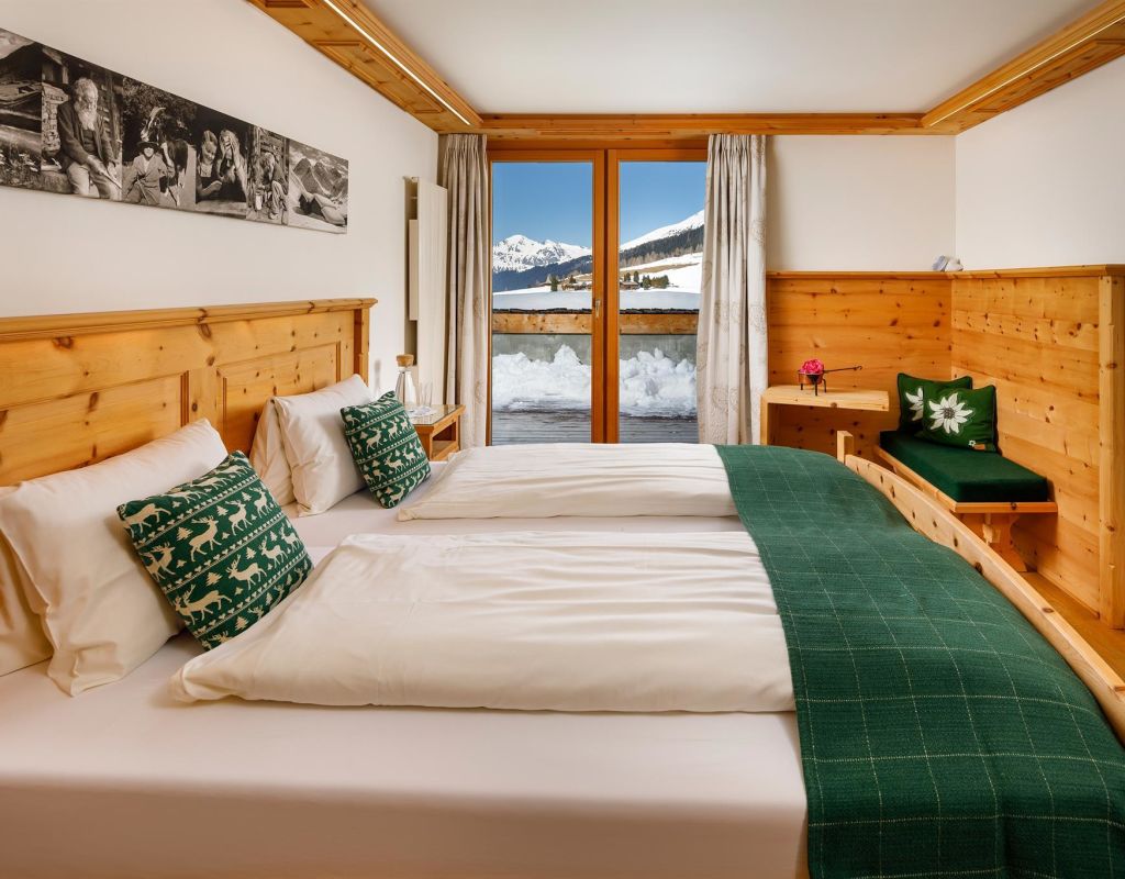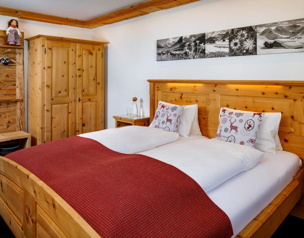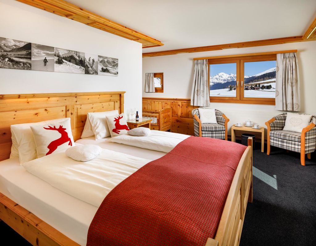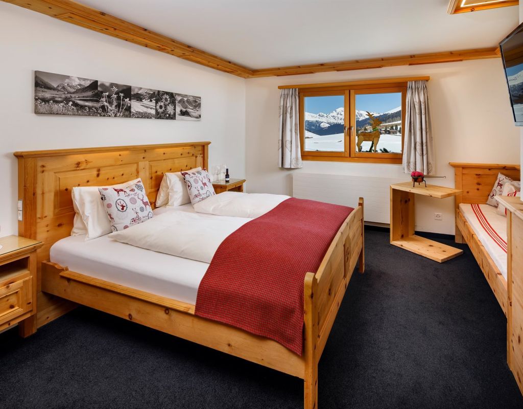 Country house beautiful located in the Sertigtal, about 15 minutes drive from Davos Platz, cosy, rustic, suitable for families; big sunny terrace and garden restaurant; all our rooms shine in rustic Swiss stone pine wood, whether a double room standard, one with private whirlpool on the terrace, a 6-bed room or simply in the tourist dormitory we have something for every taste; breakfast buffet; room for seminars for 20 persons; transfer to Davos free of charge by public bus.